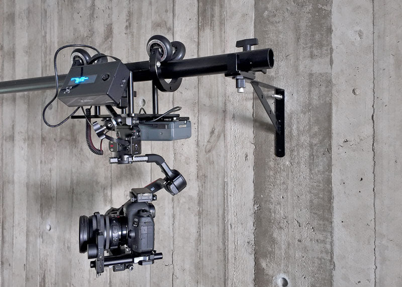 Because "hangers" can be placed in-between sections of PortaRail, the Monorail system can be setup to support heavy loads. The limitation for weight comes from the compatible gimbals. The RS4 Pro supports a payload of 10 pounds.