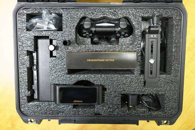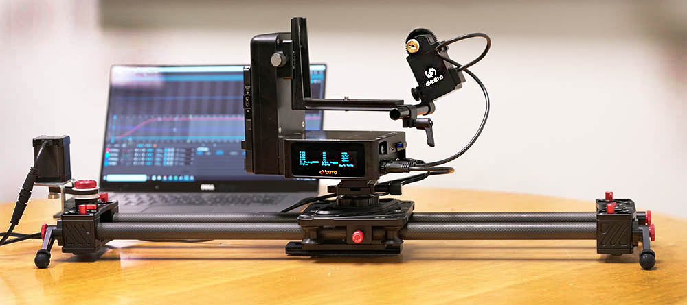 The eMotimo spectrum is the first and currently only motion control to support Dragonframe's real-time interface without the DMC-16. Under the spectrum's CNC milled aluminum chassis is a fast 32-bit processor with 4 motion control co-processors with 256x microstepping, 2.0 AMP drivers. All that jargon means: